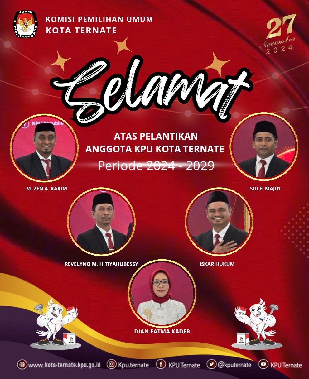 #TemanPemiih Selamat dan Sukses bagi Anggota Komisi Pemilihan Umum Kota Ternate periode 2024 - 2029.