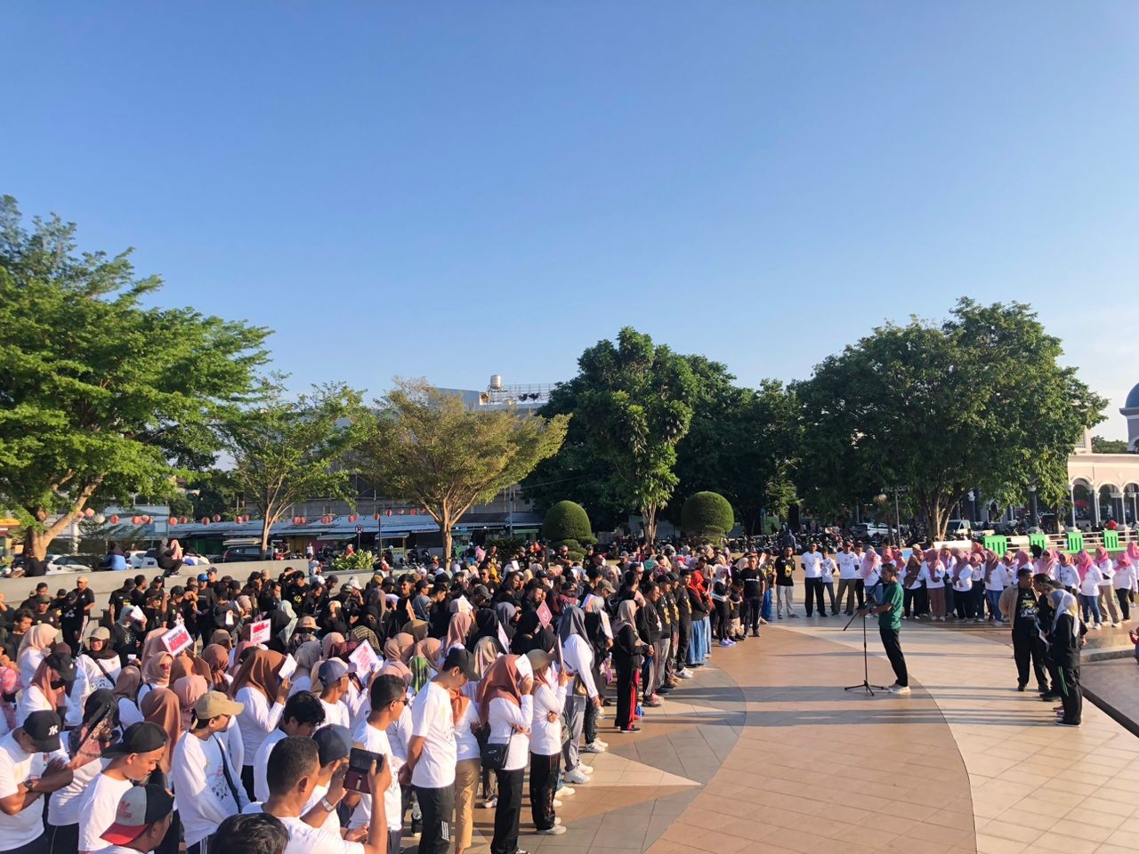 #TemanPemilih dalam rangka meningkatkan partisipasi masyarakat pada Pemilu 2024, KPU Kota Ternate melaksanakan Kegiatan Jalan Sehat dan Senam Bersama, di Landmark Kota Ternate, Minggu (29/10).
