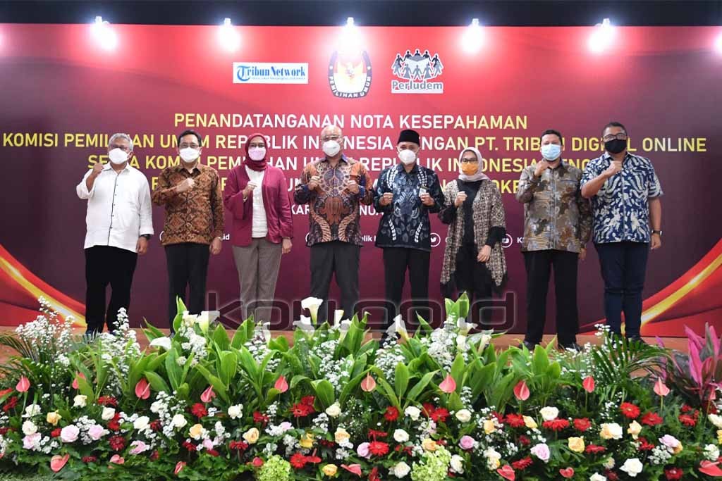 Kerja sama yang dituangkan dalam Nota Kesepahaman (Memorandum of Understanding/MoU) ini ditandatangani langsung Ketua KPU RI Ilham Saputra bersama Direktur Pemberitaan PT Tribun Network, Febby Mahendra Putra serta serta Direktur Eksekutif Perludem Khoirunnisa Nur Agustyati.