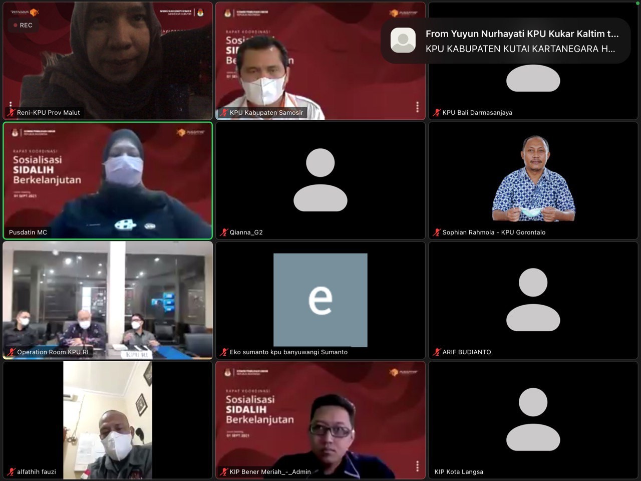 Jakarta, kpu.go.id - Komisi Pemilihan Umum (KPU) RI menyosialisasikan Aplikasi Sistem Informasi Data Pemilih (Sidalih) Berkelanjutan kepada KPU provinsi, KPU kabupaten/kota seluruh Indonesia, Rabu (1/9/2021).