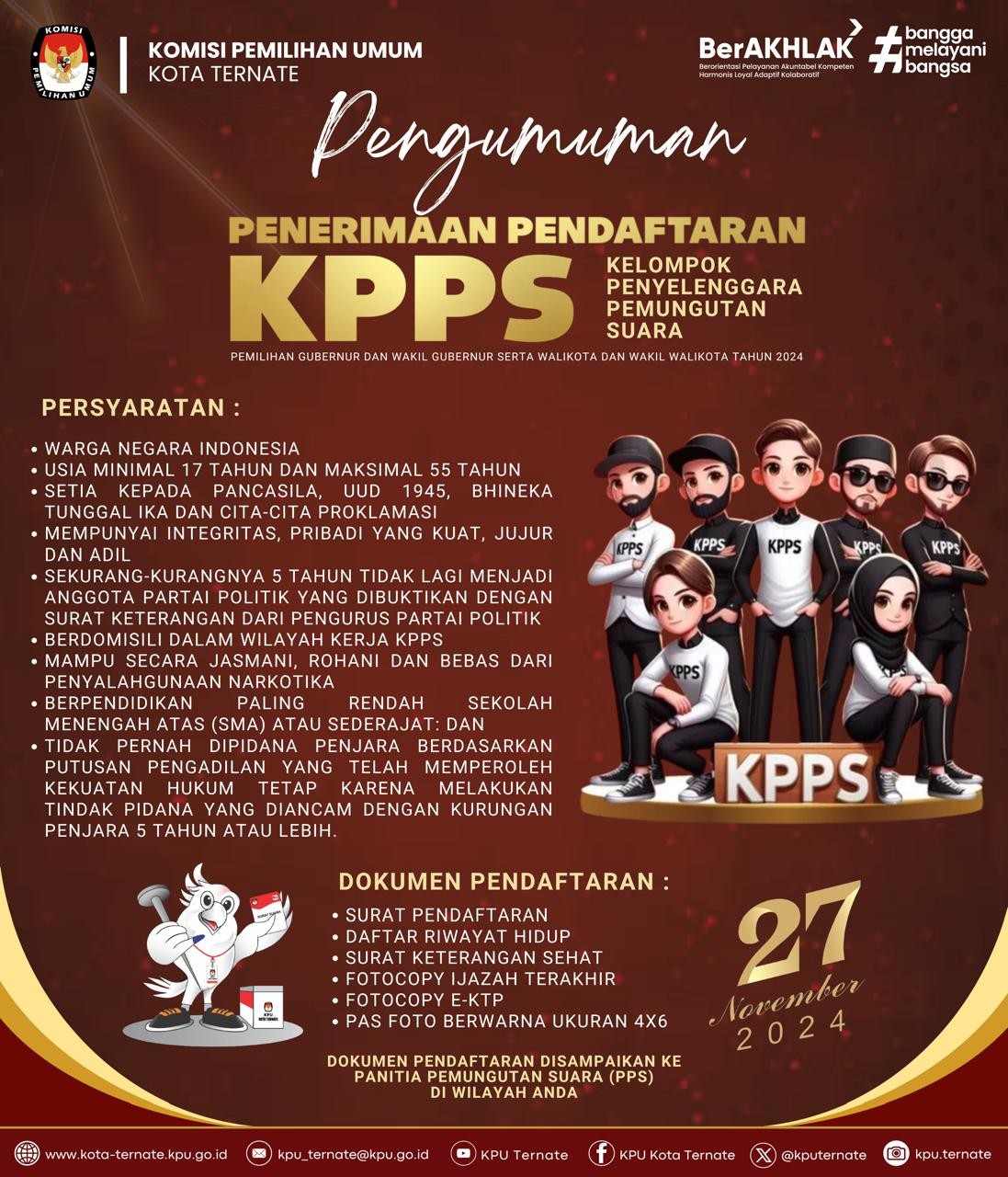 #TemanPemilih berikut persyaratan pendaftaran Kelompok Penyelenggara Pemungutan Suara (KPPS) pada Pemilihan Kepala Daerah Serentak tahun 2024.