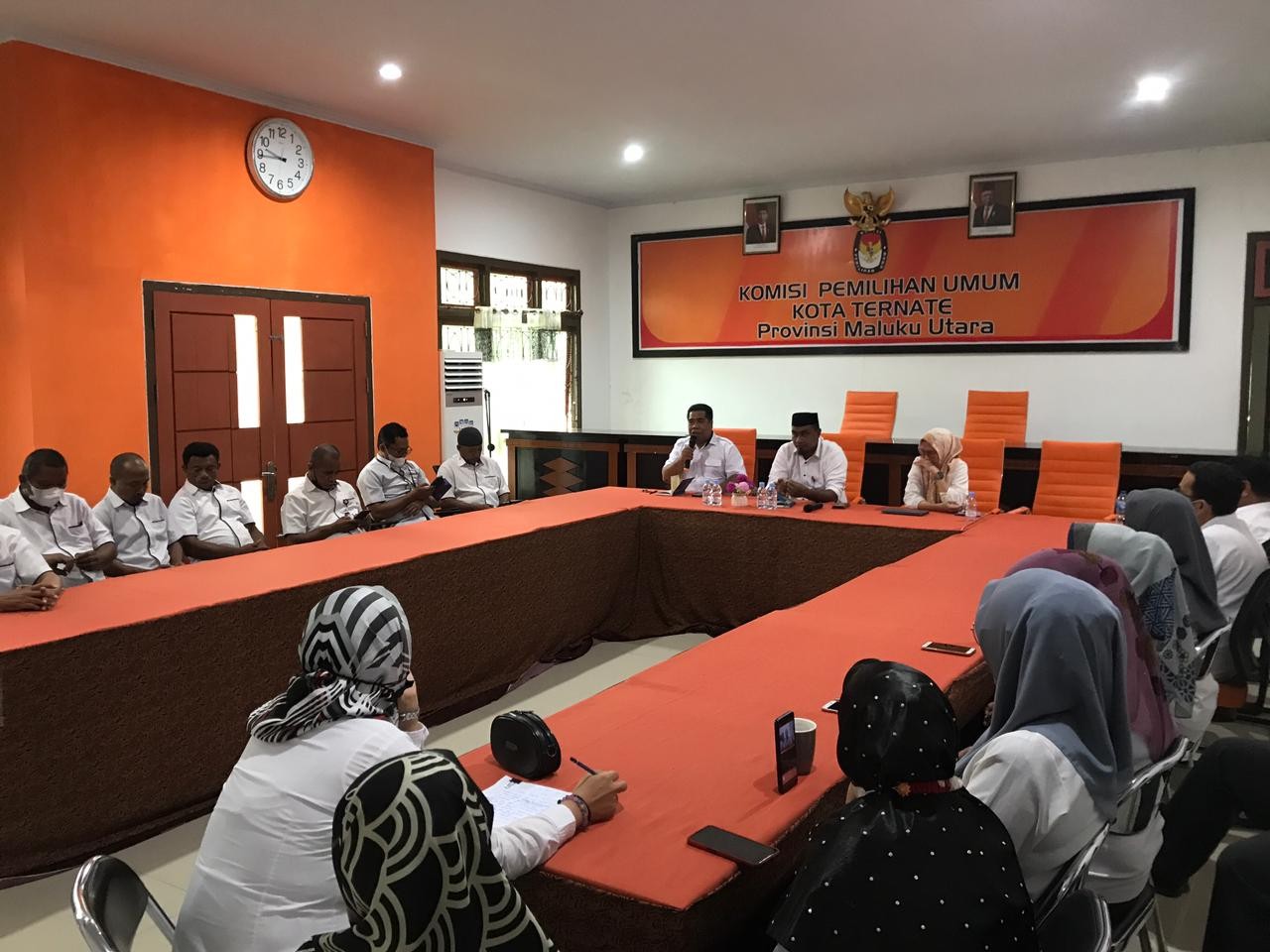 Rapat dilaksanakan di ruang rapat, bertindak selaku moderator Sekretaris, Abdullah H Nurdin, dihadiri oleh Ketua KPU Kota Ternate, M.Zen. A Karim, Ketua Divisi Hukum dan Pengawasan, Mu'minah Daeng Barang, Kasubbag dan seluruh Staf Sekretariat.